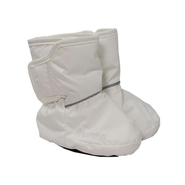 Babies’ soft waterproof and windproof lined booties. Breathable fabric. Cotton jersey inside. Reflective elements on fabric.