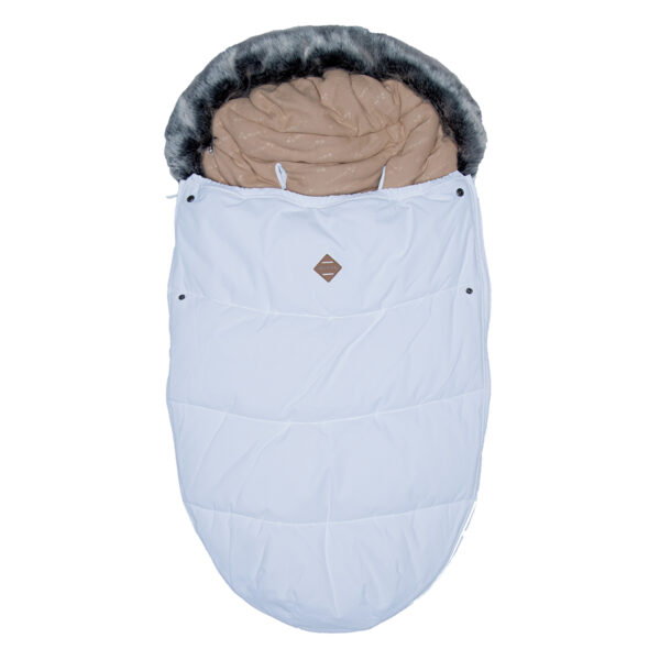 Functional stroller warmer for protection from cold weather and wind. The outer fabric is breathable and waterproof, the fur is removable and the warmer has a reflective strip for safe visibility. The openings on the back fit the 5-point harness system of most strollers. In addition, the top has a rubber band that can be installed around the backrest, ensuring the stability of the warmer. The insulation of the warmer is 400g and the lining is soft fleece fabric. Machine washable.