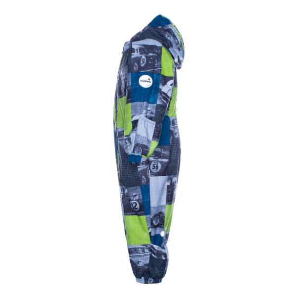 A spring-autumn overall for toddlers. The overall has a wind and water resistant outer fabric, a soft cotton flannel lining and 40g insulation. The sleeve and leg ends can be rolled up in sizes 68-80. The long zipper makes dressing easy and quick, and the leg ends are also covered with the outer fabric from the inside. To make the child visible even in the dark, the overall has reflective details.