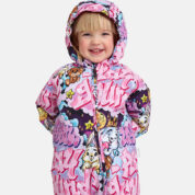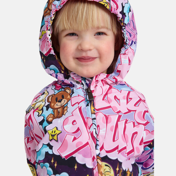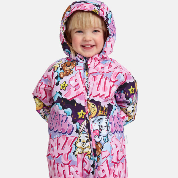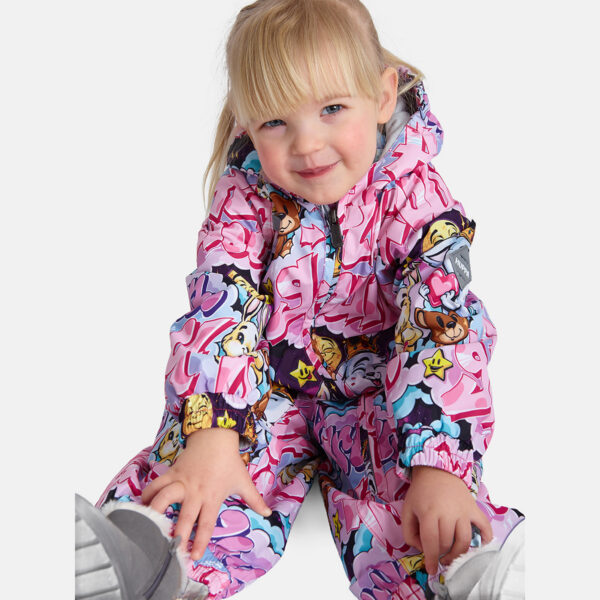 Insulated (40 g) water- and windproof overall for babies, suitable for spring and autumn. The top layer of the overall is made of a breathable material. The overall has flannel lining, sewn-in elastic bands on the sleeves, leg ends and hood. Overalls in sizes 62-80 have retractable hand and leg coverings. The overall has taped seams. The set includes elastic foot straps. It is decorated with reflective details.