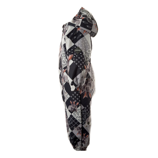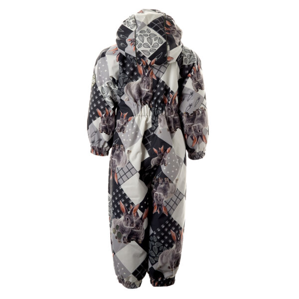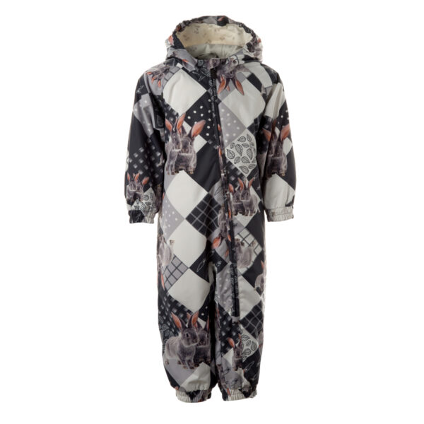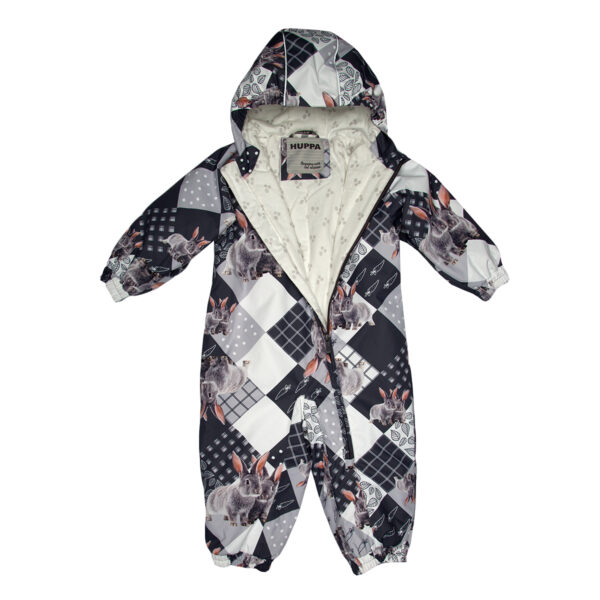 Insulated (40 g) water- and windproof overall for babies, suitable for spring and autumn. The top layer of the overall is made of a breathable material. The overall has flannel lining, sewn-in elastic bands on the sleeves, leg ends and hood. Overalls in sizes 62-80 have retractable hand and leg coverings. The overall has taped seams. The set includes elastic foot straps. It is decorated with reflective details.