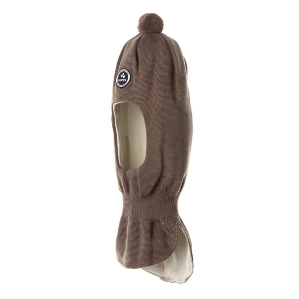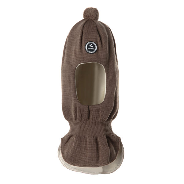 Children’s merino wool blend knit hat-scarf. Cotton jersey on the inside. Reflective Huppa logo.