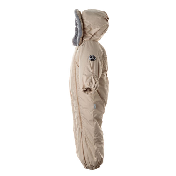 Babies’ waterproof and windproof sleeping bag-overall with 300 g of insulation. Breathable fabric. Flannel lining on the inside. Teddy Fur lining in hood. Integrated elastic band at sleeve and leg ends. Sleeve ends can be conveniently rolled down. Two long zippers at front. Leg ends can be snap fastened if necessary. Elastic foot straps. The overall can be converted into a sleeping bag using the zippers at the bottom. Reflective elements on the fabric help ensure visibility in the dark.