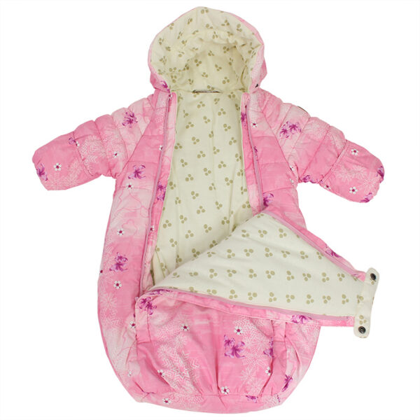 Babies’ waterproof and windproof soft overall. Breathable fabric. Flannel lining on the inside. Integrated elastic band at sleeve and leg ends and at waist on the back. Sleeve and leg ends can be conveniently rolled down in sizes 62–80. Reflective elements on fabric.