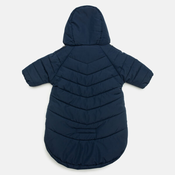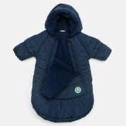Waterproof and windproof sleeping bag. Breathable fabric. Flannel lining on the inside. Integrated elastic band at sleeve ends and around hood. Sleeve ends can be conveniently rolled down. The design also keeps in mind the safety of the child in the car – the product has safety belt holes on the back to ensure that the child is secured safely in the car seat. Car seat straps should not be buckled up over outer garments as this prevents from ensuring a tight fit. The sleeping bag-overall is a good choice for car rides – the child will not get hot in the car because the overall can easily be opened. Car seat straps should be buckled up over indoor clothing and the overall can be closed up again to go outside.
