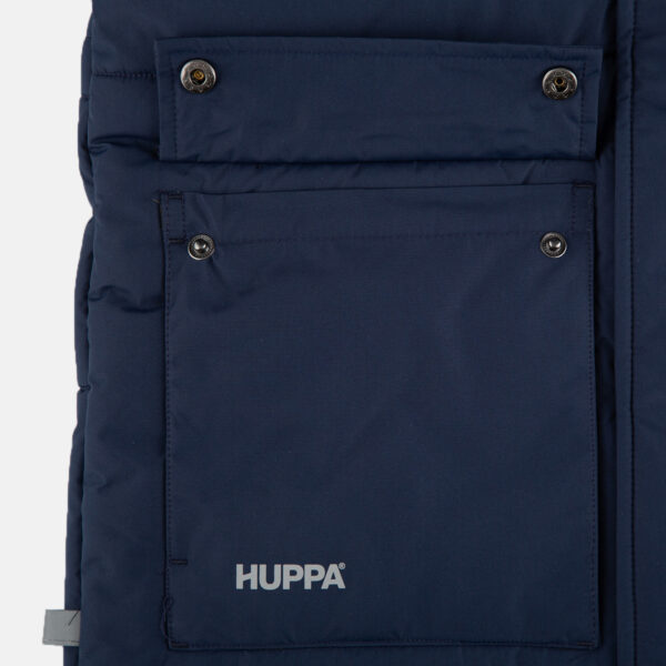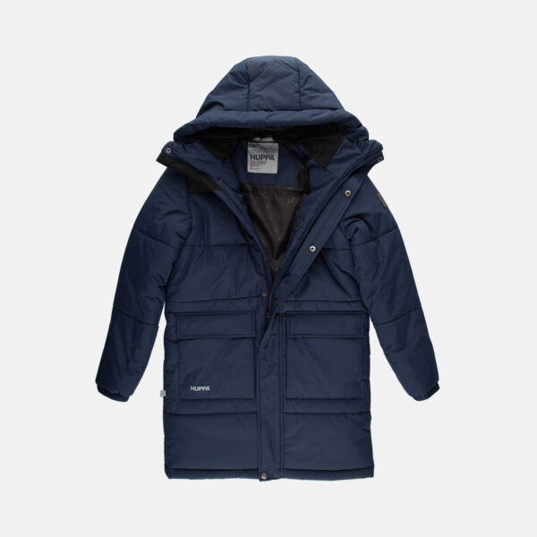 Children’s water- and windproof winter coat with 300 g insulation. The breathable outer fabric is made from recycled fibres. Soft lining fabric inside the coat. Elastic cuffs on ends of sleeves. Front two-way zipper with a snap button placket. Rubber cord tunnel with stoppers on the waistband. Reflective detailing on outer fabric.
