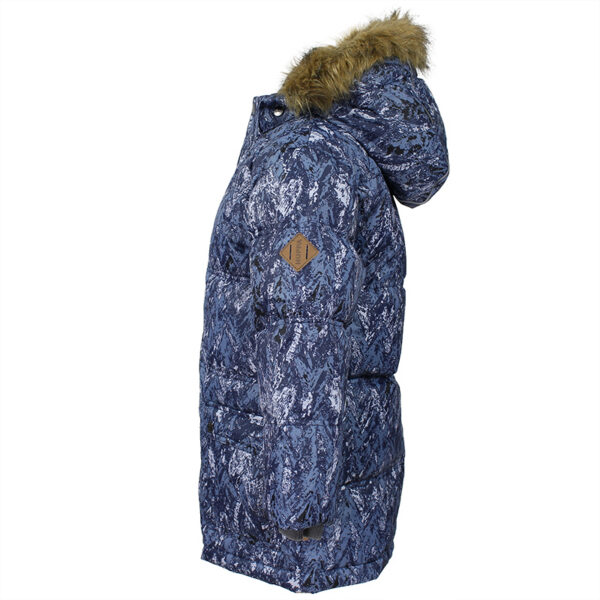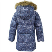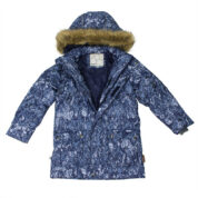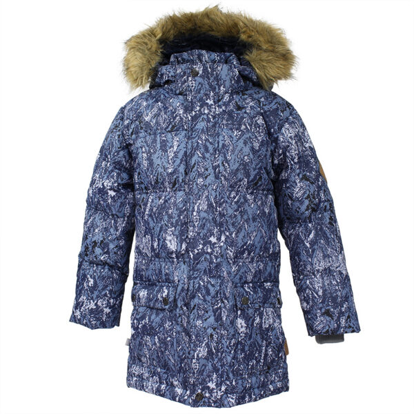Boys´ down parka. The parka´s outer fabric is wind and water resistant and has a taffeta lining. The parka is filled with 50% feather and 50% down. Ribbed inner cuffs in the sleeves and an adjustable waist keep you warm and dry. The outer fabric has reflective details. The removable hood is attached to the collar with snaps and its natural fur trim is also removable. The parka´s zipper opens from both the top and bottom, and the pockets have a zipper and snaps.