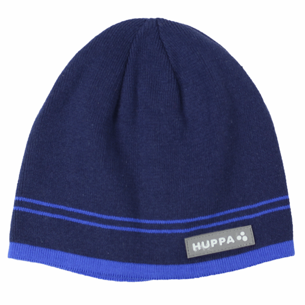 Knitted hat for boys for spring and autumn. The simple-cut hat is knitted from soft 100% cotton yarn. The hat is decorated with stripes and a Huppa logo on the front of the hat. The hat´s simple cut makes it comfortable to wear, allowing you to pull the hood up without much effort in cold or rainy weather.