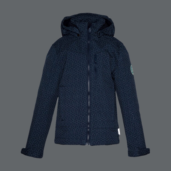 Children’s windproof Softshell jacket. Brushed soft on the inside. Integrated elastic band around the hood. Removable snap-on hood. Adjustable sleeve ends. Integrated zippered pockets. Adjustable drawstring tunnel at bottom. Reflective elements.