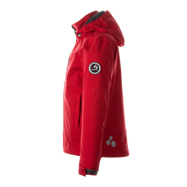 Children’s windproof Softshell jacket. Brushed soft on the inside. Integrated elastic band around the hood. Removable snap-on hood. Adjustable sleeve ends. Integrated zippered pockets. Adjustable drawstring tunnel at bottom. Reflective elements.
