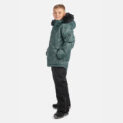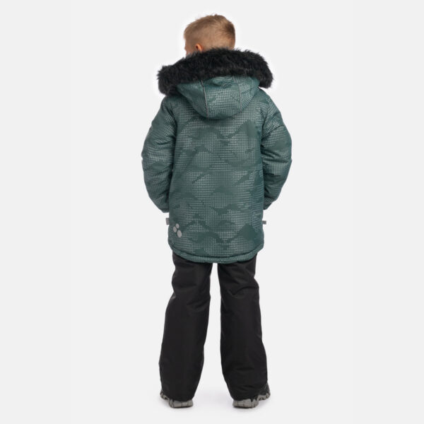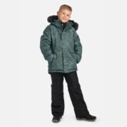 Children’s waterproof and windproof jacket. Breathable fabric. Soft mesh lining on the inside. Removable snap-on hood. Integrated elastic band at sleeve ends. Lapped zipper at front. Integrated zipper pockets at front. Waterproof taped seams. Removable faux fur trim on hood. Reflective elements on fabric.