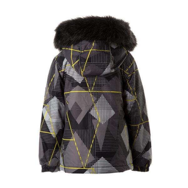Children’s waterproof and windproof jacket. Breathable fabric. Soft mesh lining on the inside. Removable snap-on hood. Integrated elastic band at sleeve ends and on the waist. Zipper fastening Integrated zipper pockets at front. Removable faux fur trim on hood. Reflective elements on fabric.