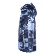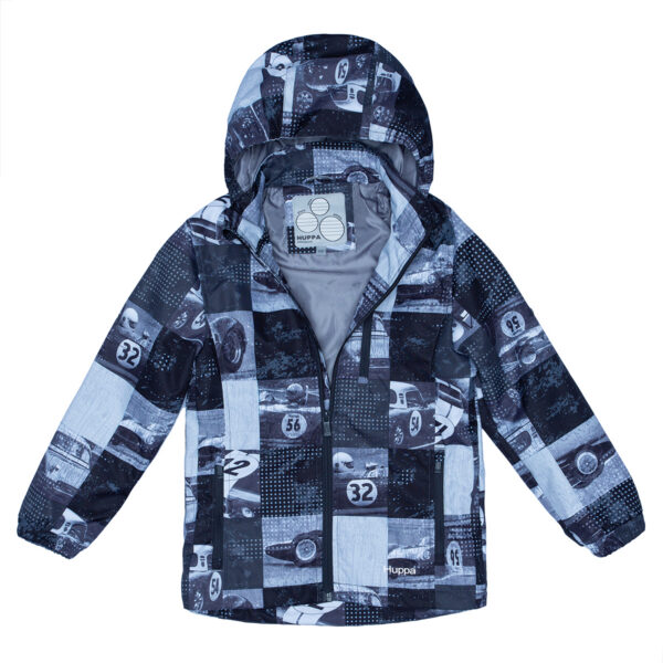 Water- and windproof spring-autumn jacket for adolescents and men. Breathable outer fabric. The inside of the jacket is made of soft lining fabric. The removable hood attaches to the collar with press studs. Rubber band incorporated in the sleeve ends and the edge of the hood. Zipper fastener. Pockets with integrated zipper in the front piece. Rubber band tunnel with stoppers incorporated at the bottom. Reflective details on the outer fabric.