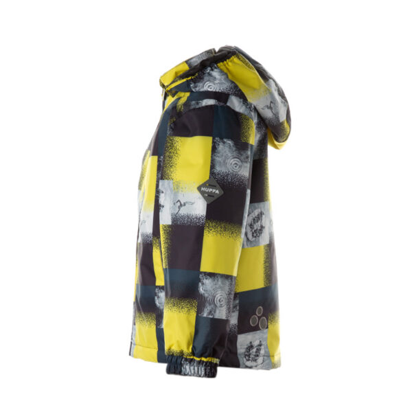 Water- and windproof jacket for boys, suitable for spring and autumn. The top layer of the jacket is made of a breathable material. The detachable hood can be attached to the collar with snap fasteners. The jacket has elasticated sleeve cuffs and hood. It is decorated with reflective details.