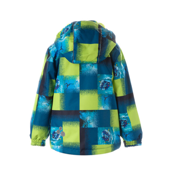 Insulated (100 g) water- and windproof jacket for boys, suitable for spring and autumn. The top layer of the jacket is made of a breathable material. The detachable hood can be attached to the collar with snap fasteners. The jacket has elasticated sleeve cuffs and hood. It is decorated with reflective details.