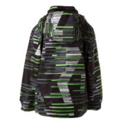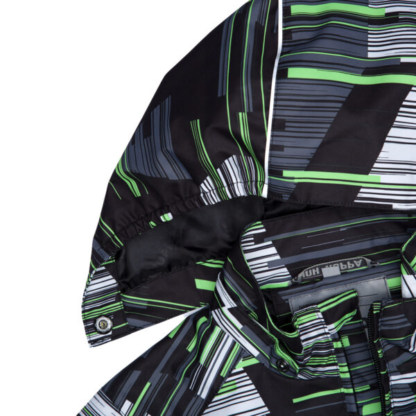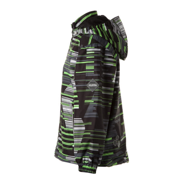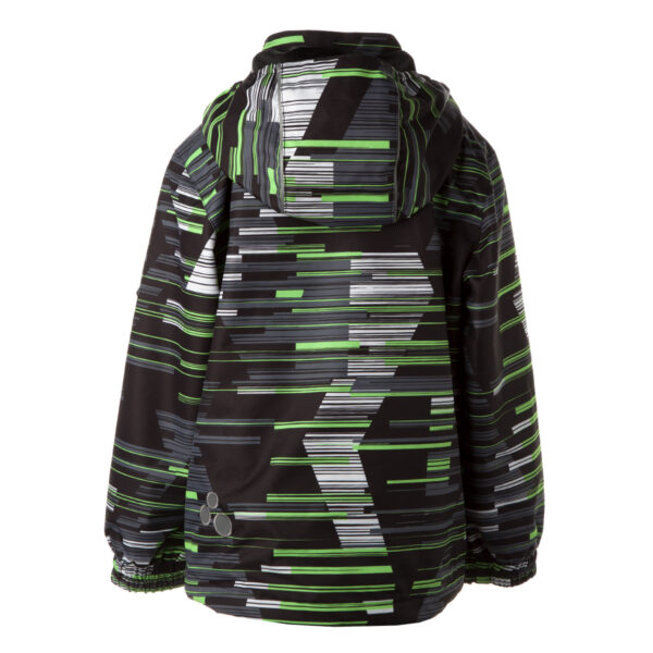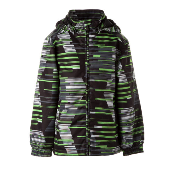 Insulated (100 g) water- and windproof between-seasons jacket for boys. The top layer of the jacket is made of a breathable material. The elasticated, detachable hood can be attached to the collar with snap fasteners. The jacket also has an elasticated waist and sleeve ends. It is decorated with reflective details.