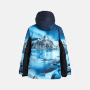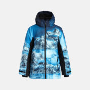 Children’s waterproof and windproof jacket. Breathable fabric. Soft mesh lining on the inside. Integrated adjustable elastic band around the hood and on the back. Waterproof zipper at front, zippered pockets. Adjustable sleeve ends. Cuffs with thumb holes at sleeve ends. Waterproof taped seams. Reflective elements on fabric.