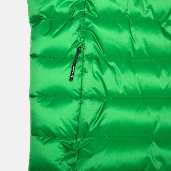 Bērnu stepētā jaka Ar vieglu spīdumu, vēja necaurlaidīgs virsējais audums Jakas pildījumā ir inovatīvs, pārstrādāts materiāls, kas imitē dūnu pildījuma īpašības Materiāls ir silts, ātri žūstošs un mazgājot nesaveļas Lieliska alternatīva dabīgajam dūnu pildījumam