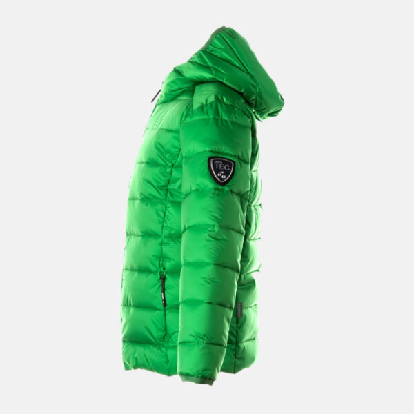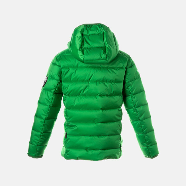 Boys´ quilted jacket. Windproof slightly glossy top fabric. The jacket is filled with innovative recycled material imitating the properties of feather fill. The material is warm, dries quickly and does not clump after washing. A great alternative to natural feather fill.