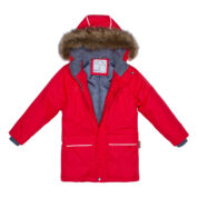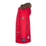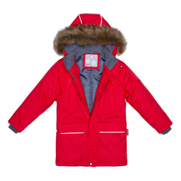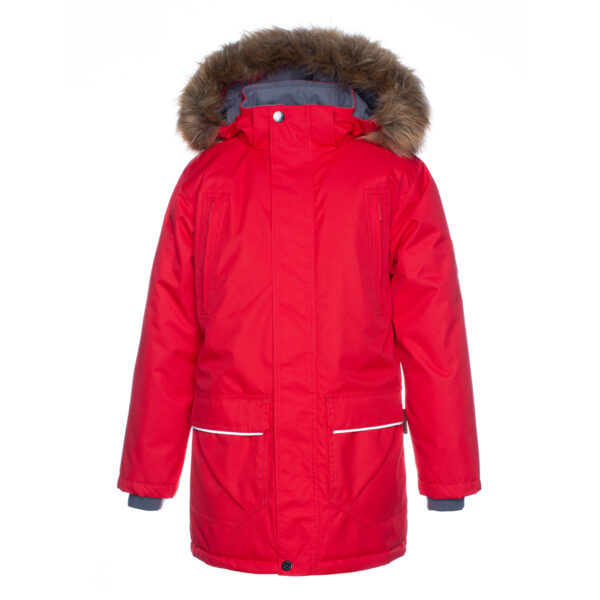 Boys´ parka with 300 g insulation. The outer fabric is wind- and waterproof. Taped seams, ribbed inner cuffs in the sleeves and an adjustable waist and hem keep you warm and dry. Reflective details on the outer fabric. The removable hood is attached to the collar with snaps and its natural fur trim is also removable. The parka has zippered chest pockets and snap-fastened front pockets.