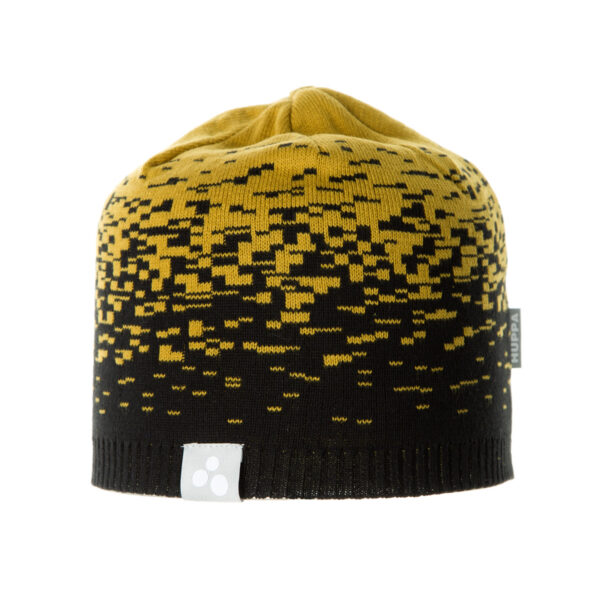 Children´s hat knitted from soft cotton blend yarn. Huppa reflective logo on the hat.