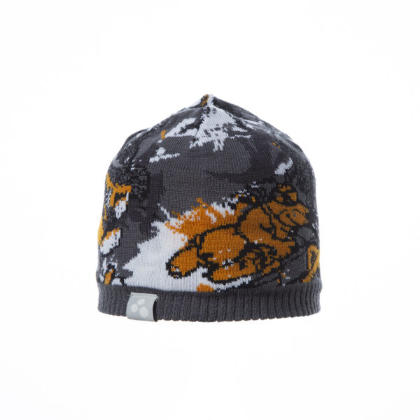 Children’s merino wool knit hat. Cotton jersey on the inside. Reflective Huppa logo.