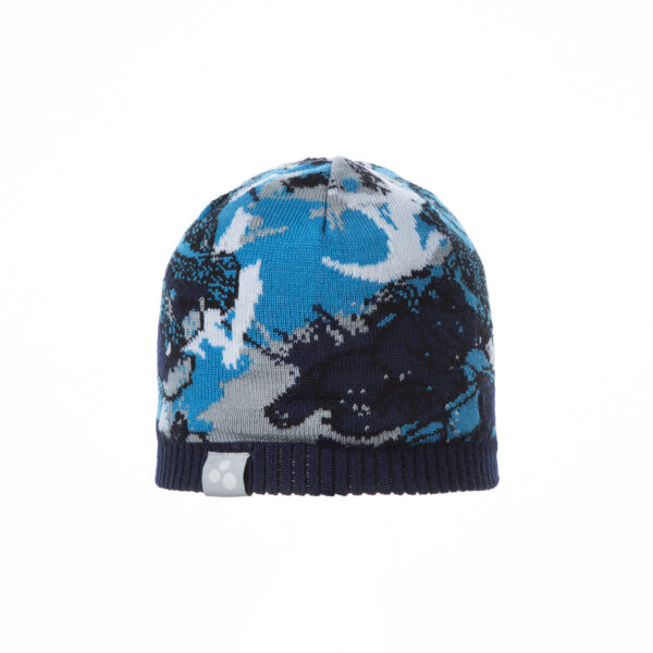 Children’s merino wool knit hat. Cotton jersey on the inside. Reflective Huppa logo.