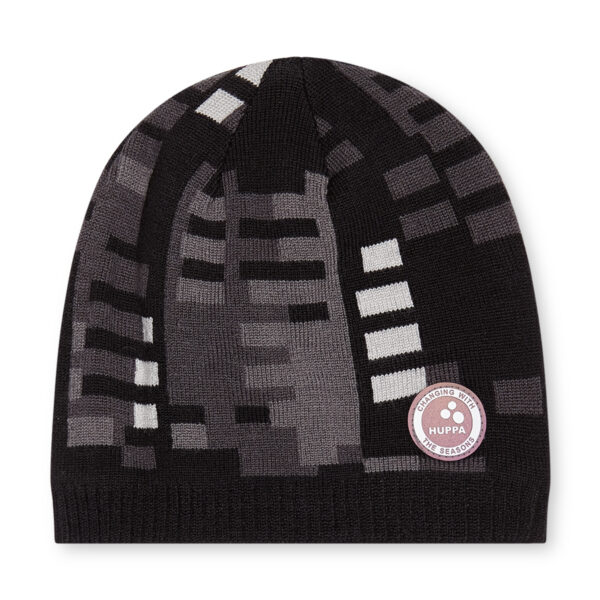 Children’s merino wool knit hat. Cotton jersey on the inside. Reflective Huppa logo.