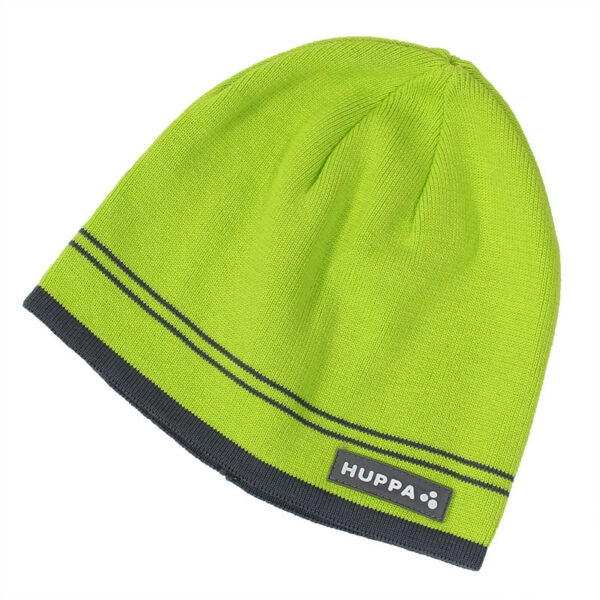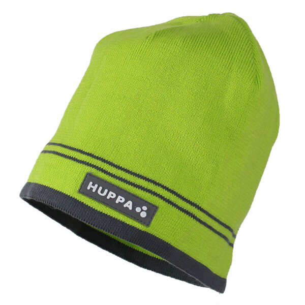 Knitted hat for boys for spring and autumn. The simple-cut hat is knitted from soft 100% cotton yarn. The hat is decorated with stripes and a Huppa logo on the front of the hat. The hat´s simple cut makes it comfortable to wear, allowing you to pull the hood up without much effort in cold or rainy weather.
