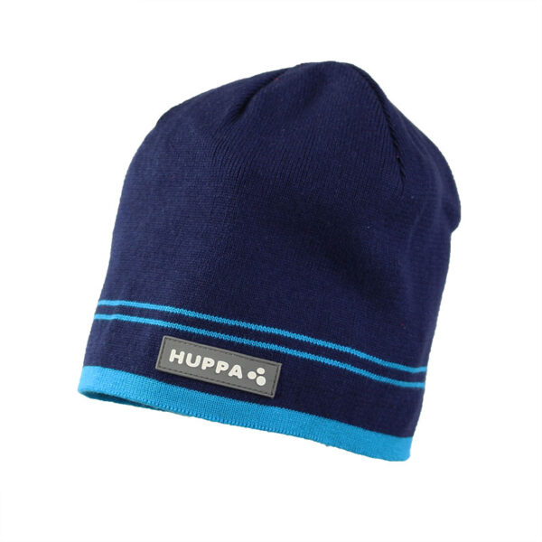 Knitted hat for boys for spring and autumn. The simple-cut hat is knitted from soft 100% cotton yarn. The hat is decorated with stripes and a Huppa logo on the front of the hat. The hat´s simple cut makes it comfortable to wear, allowing you to pull the hood up without much effort in cold or rainy weather.