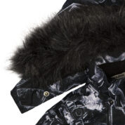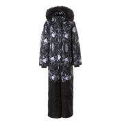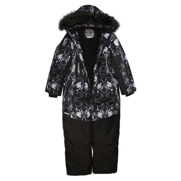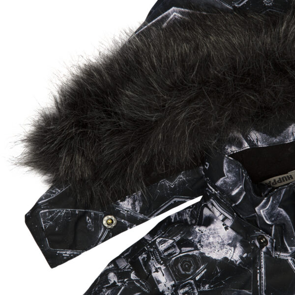 Children’s waterproof and windproof overall. Breathable fabric. Soft lining fabric on the inside. Removable snap-on hood. Integrated adjustable elastic band around the hood and on the back. Ribbed cuffs at sleeve ends. Adjustable sleeve ends. Lapped zipper at front. Integrated zipper pockets at front. Buttonhole-adjustable waist. Durable Cordura fabric legs. Snow gaiters at leg ends. Drawstring tunnel with stoppers at leg ends. Waterproof taped seams. Removable faux fur trim on hood. Reflective elements on fabric.