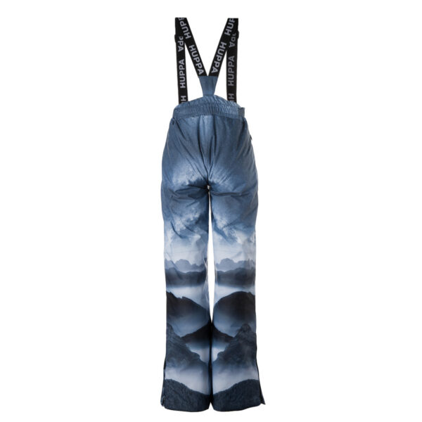 Children´s waterproof and windproof pants. Breathable fabric. Soft mesh lining on the inside of the pants. Adjustable removable braces. Adjustable waist. Integrated elastic band at the back of the waist. Integrated zippered pockets. Snow gaiters at leg ends. Zipper-adjustable leg end width. Waterproof taped seams. Reflective elements at the bottom.
