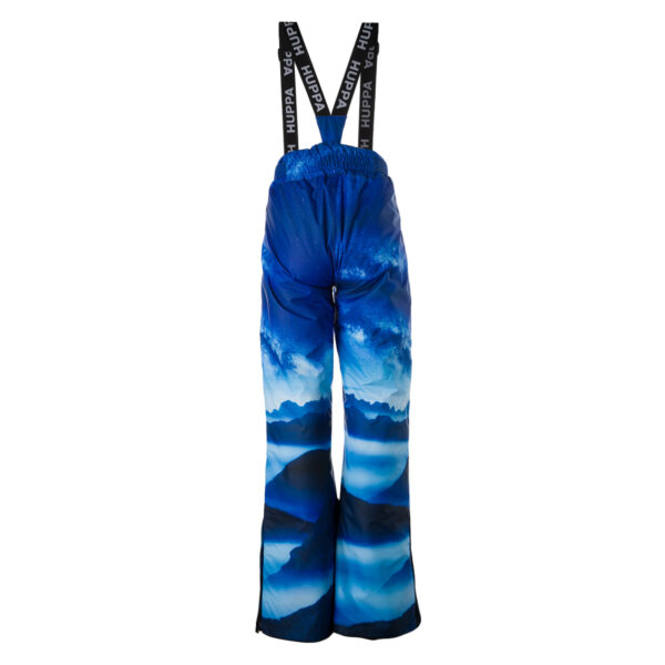 Children´s waterproof and windproof pants. Breathable fabric. Soft mesh lining on the inside of the pants. Adjustable removable braces. Adjustable waist. Integrated elastic band at the back of the waist. Integrated zippered pockets. Snow gaiters at leg ends. Zipper-adjustable leg end width. Waterproof taped seams. Reflective elements at the bottom.
