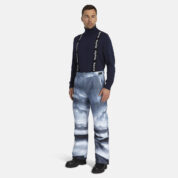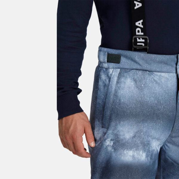 Men’s waterproof and windproof pants. Breathable fabric. Soft mesh lining on the inside of the pants. Adjustable removable braces. Adjustable waist. Integrated elastic band at the back of the waist. Integrated zippered pockets. Snow gaiters at leg ends. Zipper-adjustable leg end width. Waterproof taped seams. Reflective elements at the bottom.