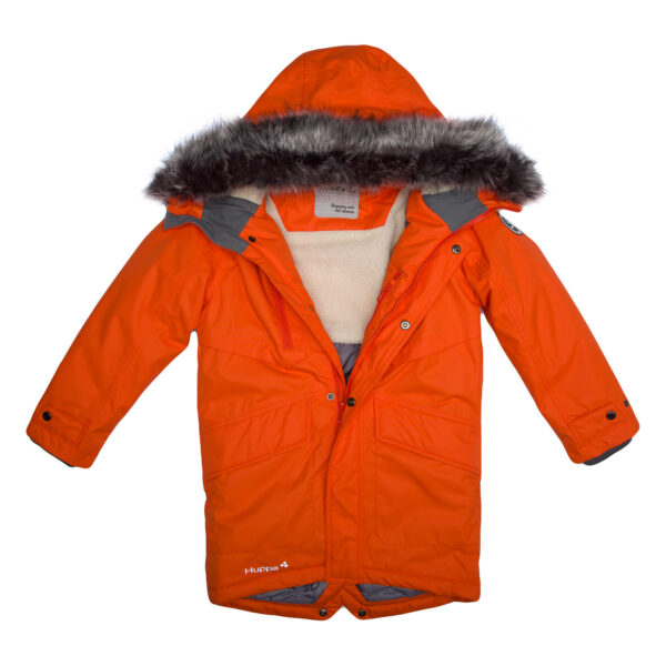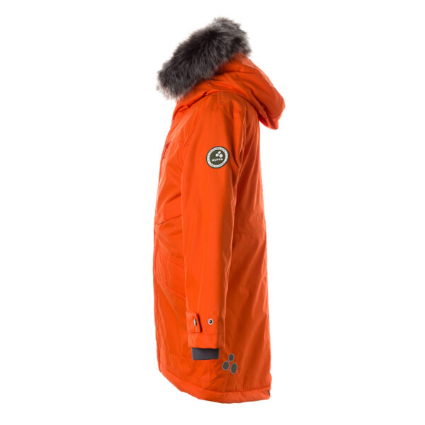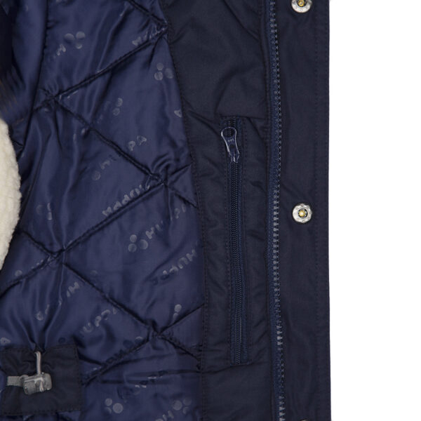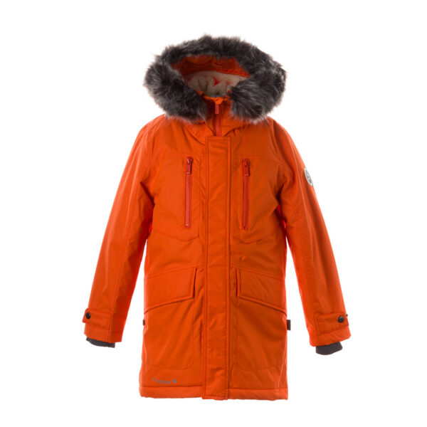 Boys´ waterproof and windproof winter parka. Breathable fabric. Soft fabric on the inside. Faux sheepskin lining at the top of the back and inside the hood. Adjustable hood. Ribbed cuffs at sleeve ends. Adjustable sleeve ends. Two-way zipper covered with press button flap at front. Drawstring tunnel with stoppers on waist. Waterproof taped seams. Removable faux fur trim on hood. Reflective elements on fabric.