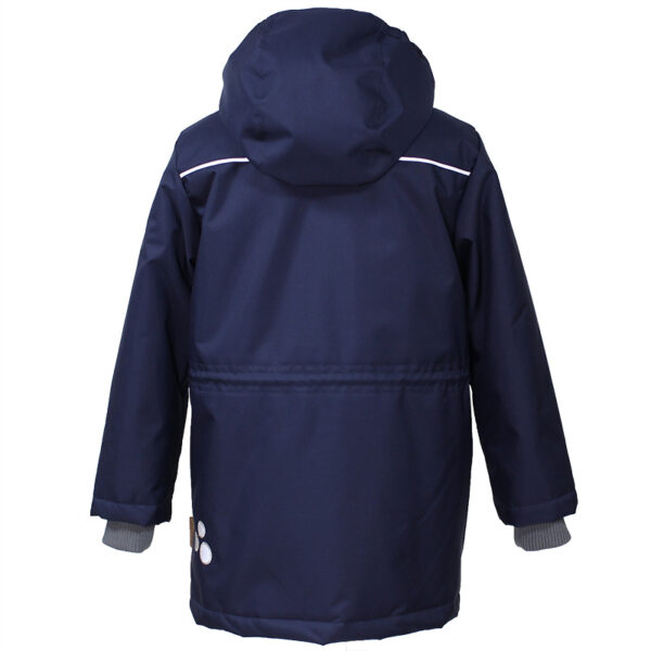 Boys´ spring-autumn parka with 40g insulation. The longer jacket has a taffeta lining so that your hands can slip through it more easily when putting it on. For more comfortable wear, the jacket has a removable hood with snaps, waterproof taped shoulder seams, and ribbed sleeve cuffs. For safer wear, the jacket has reflective details in the front and back cutouts and on the lower back hem. A special loop has been added to the right side of the jacket for hanging a reflector.