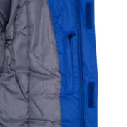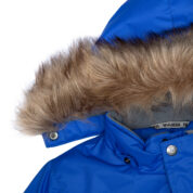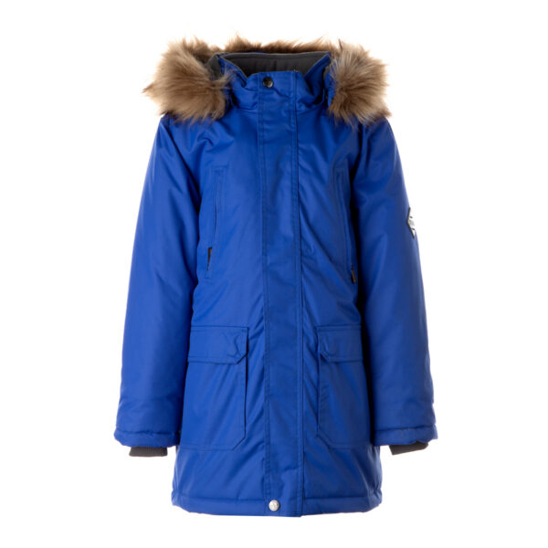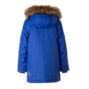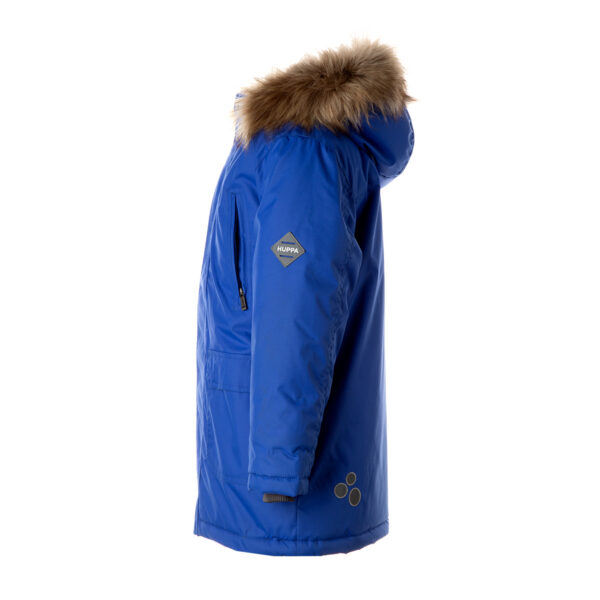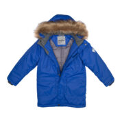 Boys’ water- and windproof winter parka with 300 g insulation. Breathable outer fabric. Detachable hood fastens to the collar with snap buttons. Ribbed cuffs on sleeves. Waterproof taped seams. Reflective detailing on outer fabric.