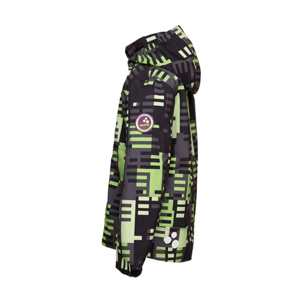 Children’s windproof Softshell jacket. Brushed soft on the inside. Integrated elastic band around the hood. Removable snap-on hood. Adjustable sleeve ends. Integrated zippered pockets. Adjustable drawstring tunnel at bottom. Reflective elements.