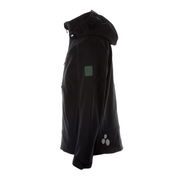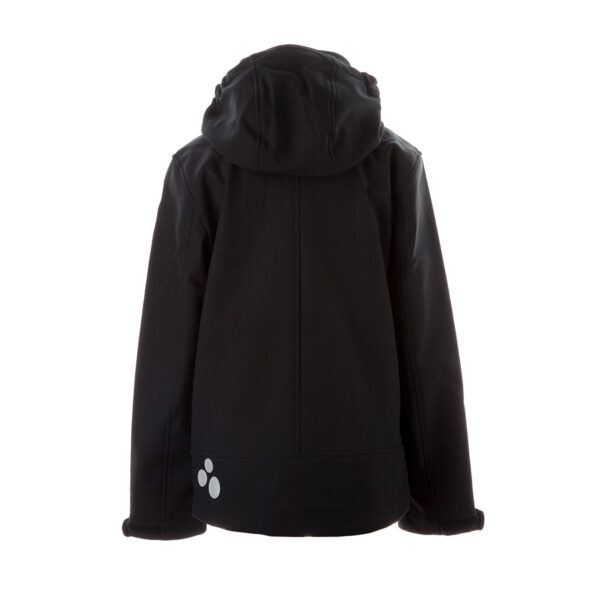 Children’s windproof Softshell jacket. Brushed soft on the inside. Integrated elastic band around the hood. Removable snap-on hood. Adjustable sleeve ends. Integrated zippered pockets. Adjustable drawstring tunnel at bottom. Reflective elements.