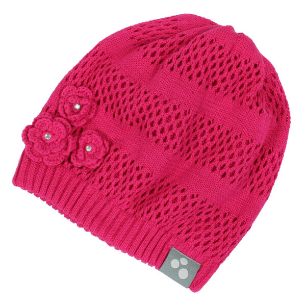 Knitted spring-autumn hat for girls. The lace hat is knitted from two layers of soft 100% cotton yarn. The hat is decorated with pretty crocheted flowers on one side and a modest Huppa logo. For more comfortable wearing, the bottom edge of the hat is knitted in a ribbed pattern so that the hat stays on the head better.