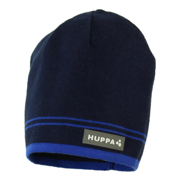 Knitted hat for boys for spring and autumn. The simple-cut hat is knitted from soft 100% cotton yarn. The hat is decorated with stripes and a Huppa logo on the front of the hat. The hat´s simple cut makes it comfortable to wear, allowing you to pull the hood up without much effort in cold or rainy weather.