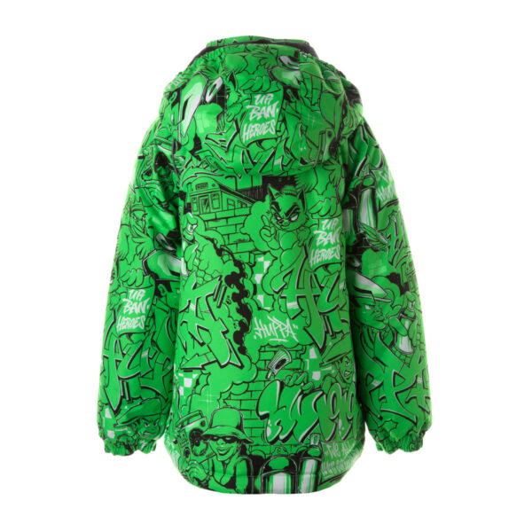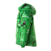 Children’s waterproof and windproof jacket. Breathable fabric. Soft mesh lining on the inside. Removable snap-on hood Integrated elastic band at sleeve ends. Zipper covered with stud-press flap at front. Integrated pockets at front. Reflective elements on fabric.