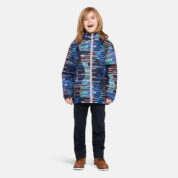 Children´s waterproof and windproof spring-autumn jacket. Breathable outer fabric. Rubber band incorporated at the edge of the hood. The removable hood attaches to the collar with press studs. Adjustable sleeve ends. Zipper fastener. Incorporated pockets on the front. Rubber band tunnel with stoppers incorporated at the bottom. Reflective details on the outer fabric.