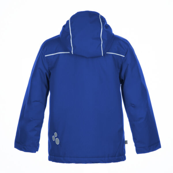 Children´s waterproof and windproof spring-autumn jacket. Breathable outer fabric. Rubber band incorporated at the edge of the hood. The removable hood attaches to the collar with press studs. Adjustable sleeve ends. Zipper fastener. Incorporated pockets on the front. Rubber band tunnel with stoppers incorporated at the bottom. Reflective details on the outer fabric.