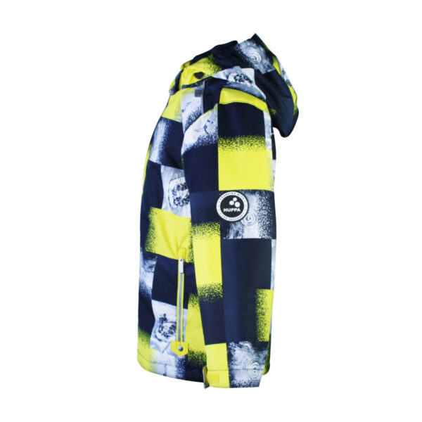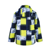 Children´s waterproof and windproof spring-autumn jacket. Breathable outer fabric. Rubber band incorporated at the edge of the hood. The removable hood attaches to the collar with press studs. Adjustable sleeve ends. Zipper fastener. Incorporated pockets on the front. Rubber band tunnel with stoppers incorporated at the bottom. Reflective details on the outer fabric.
