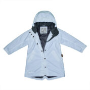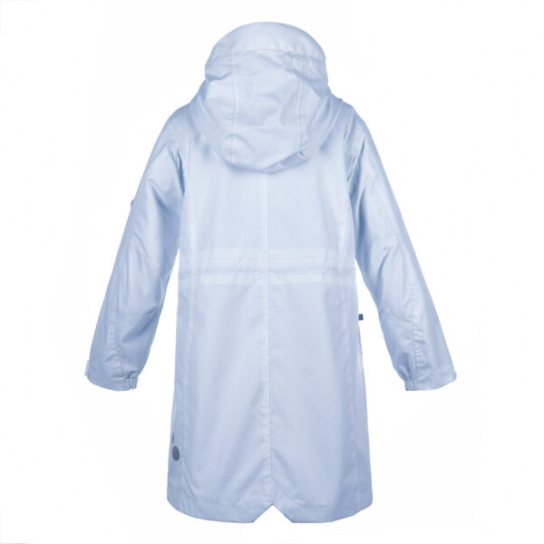Children´s waterproof and windproof spring-autumn parka. Breathable outer fabric. The inside of the parka is made of soft lining fabric. Rubber band incorporated at the edge of the hood. Adjustable sleeve ends. Rubber band tunnel with stoppers on the waistline. The parka has a waterproof taped armhole and neck, hood, and shoulder seams. Reflective details on the outer fabric.