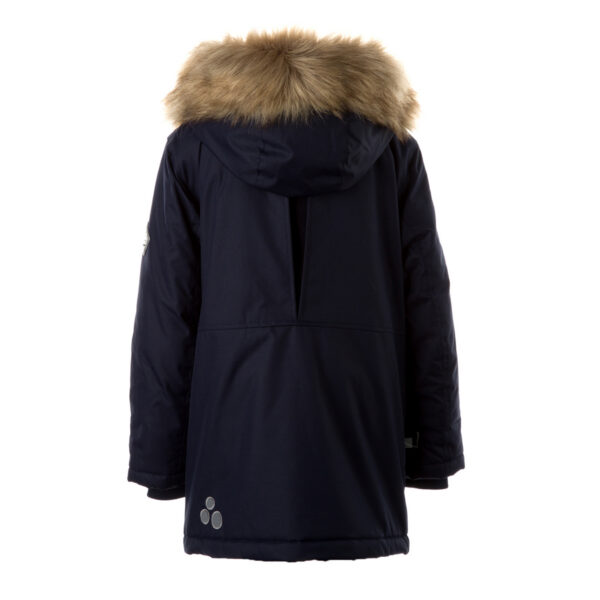 Children’s waterproof and windproof winter parka. Breathable fabric. Soft lining on the inside. Removable snap-on hood. Ribbed cuffs at sleeve ends. Faux fur trim on hood. Waterproof taped seams. Reflective elements on fabric.
