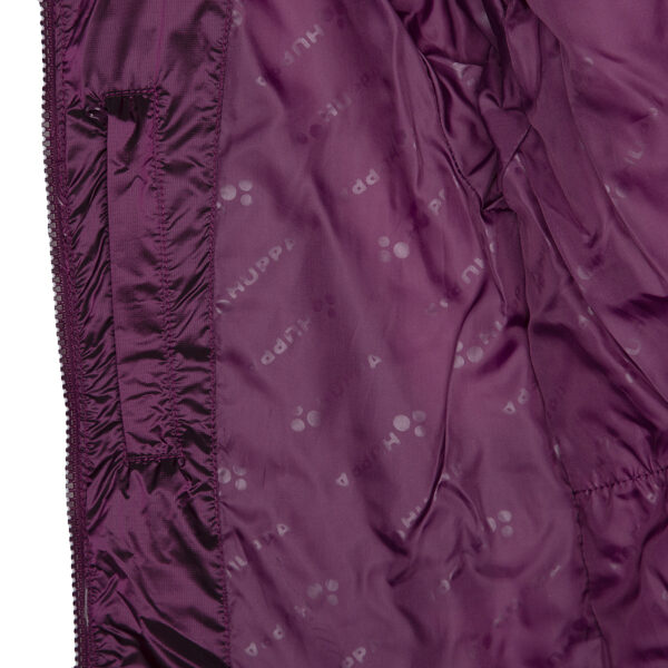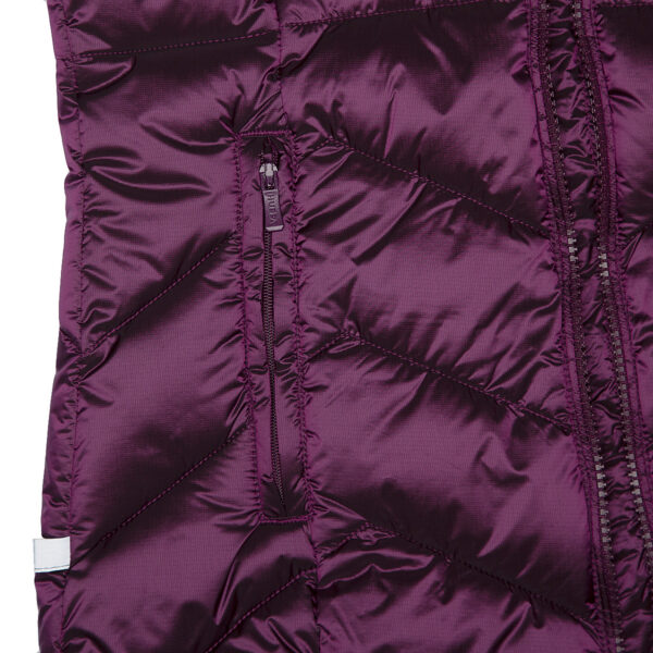 Children’s waterproof and windproof quilted winter coat. Breathable fabric. Soft lining on the inside. Removable snap-on hood. The coat is filled with innovative recycled material imitating the properties of feather fill. The material is warm, dries quickly and does not clump after washing. A great to natural feather fill. Removable faux fur trim on hood. Two zippered pockets at front for gloves or other necessities. Reflective elements on fabric.