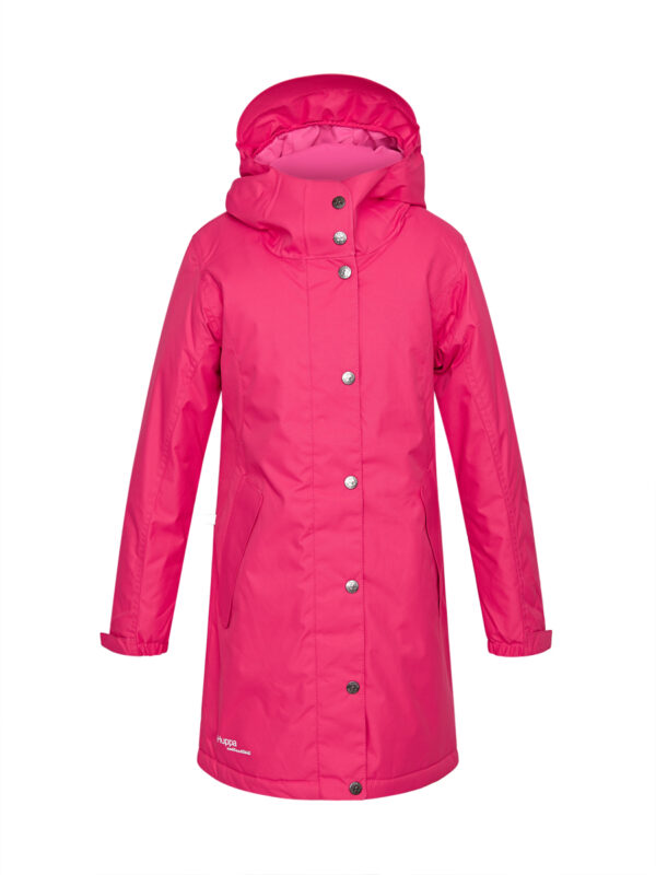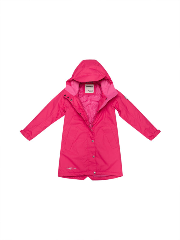 Children´s waterproof and windproof semi-season parka. Breathable outer fabric. The inside of the parka is made of soft lining fabric. Rubber band incorporated at the edge of the hood. Adjustable sleeve ends. Rubber band tunnel with stoppers on the waistline. The parka has a waterproof taped armhole and neck, hood, and shoulder seams. Reflective details on the outer fabric.