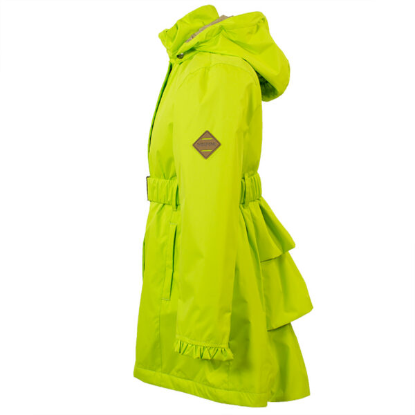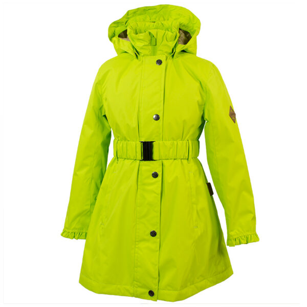 Tüdrukute 40g soojustusega kevad-sügis mantel. Kaunilõikelisel pika lukuga mantlil on kerge taftvooder, mis lihtsustab mantli selga panekut, lastes käel kergelt varrukast läbi libiseda. Mugavamaks kandmiseks on taljeosal pingutatav vöö, veekindlaks teibitud õlaõmblused, lukkudega taskud ning kapuuts vihmase ja tuulise ilma kaitseks.